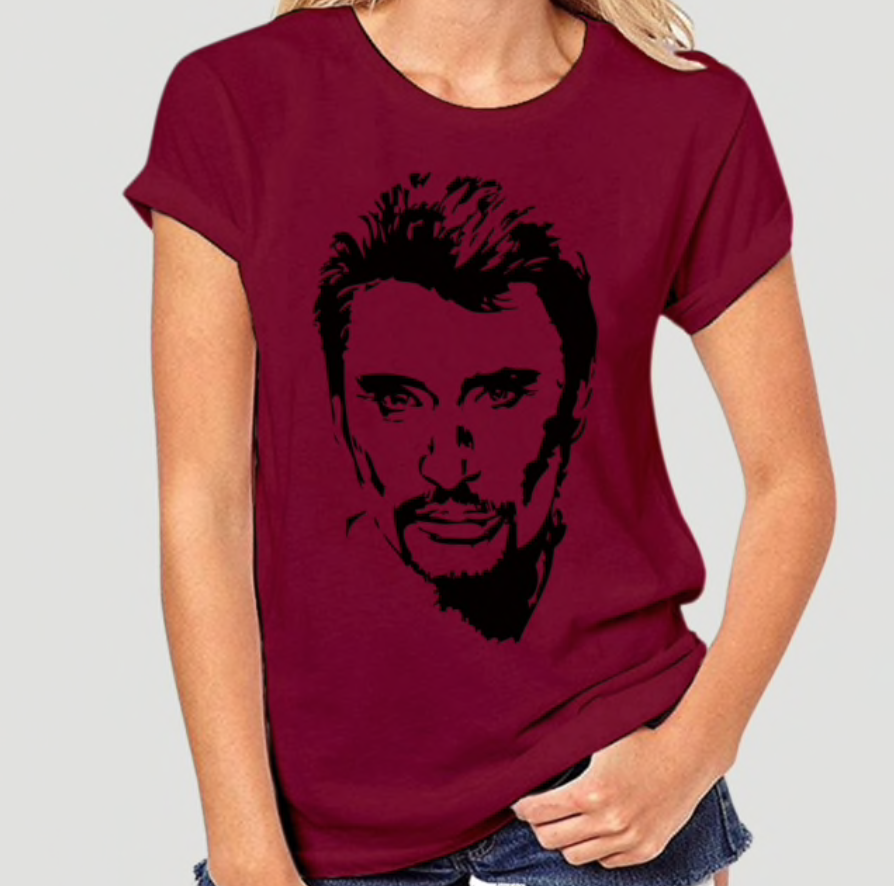T-shirt en coton, illustré par le visage de Johnny Hallyday.
